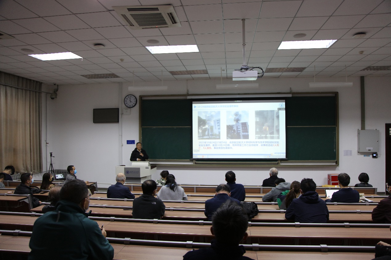 党委书记梁得亮通报了学院近期实验室安全检查的整体情况,并以全国高校实验室安全事故案例作为警示,进一步强调了科研实验安全的重要性,要求全院高度重视,积极排查安全隐患,严格遵循各项实验规范,务必确保师生人身财产安全。