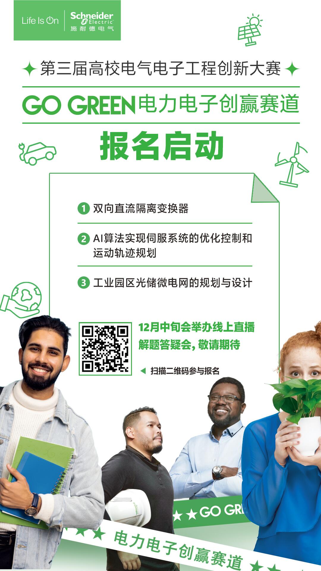 竞赛目的:大赛以“迎接双碳,实现新型电力系统解决方案”为主题,紧密结合工程技术前沿设置命题方向。激发学生的创造、创新和产业化设计能力,推动提升电气与电子产业降本增效和促进双碳目标的培养模式的开展,助力校企联合创新支撑平台的建设。